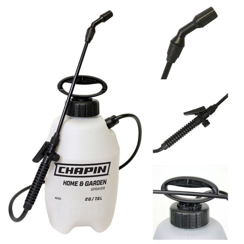 Chapin's 16200 2-gallon home and garden poly tank sprayer is a simple solution for homeowners. Designed to handle quick tasks around the house like watering plants, feeding indoor plants and applying pest control chemicals. The nitrile seals and gaskets are compatible with common fertilizers, weed and pest control chemicals and basic cleaning solutions. Its ergonomic pump handle, poly wand, poly trigger shut-off with lock-on, adjustable cone nozzle, and an in-tank filter are standard on this home and garden sprayer.